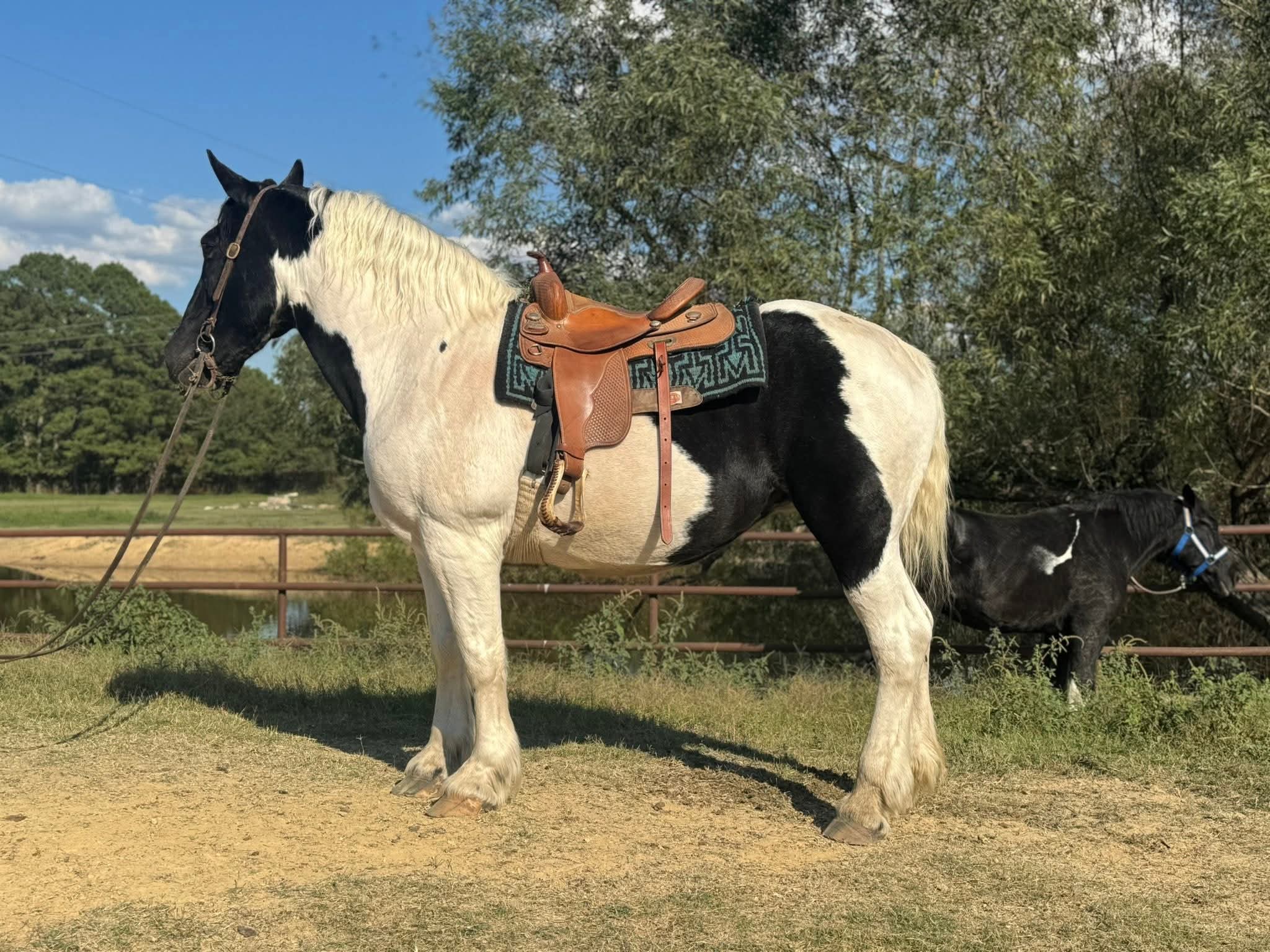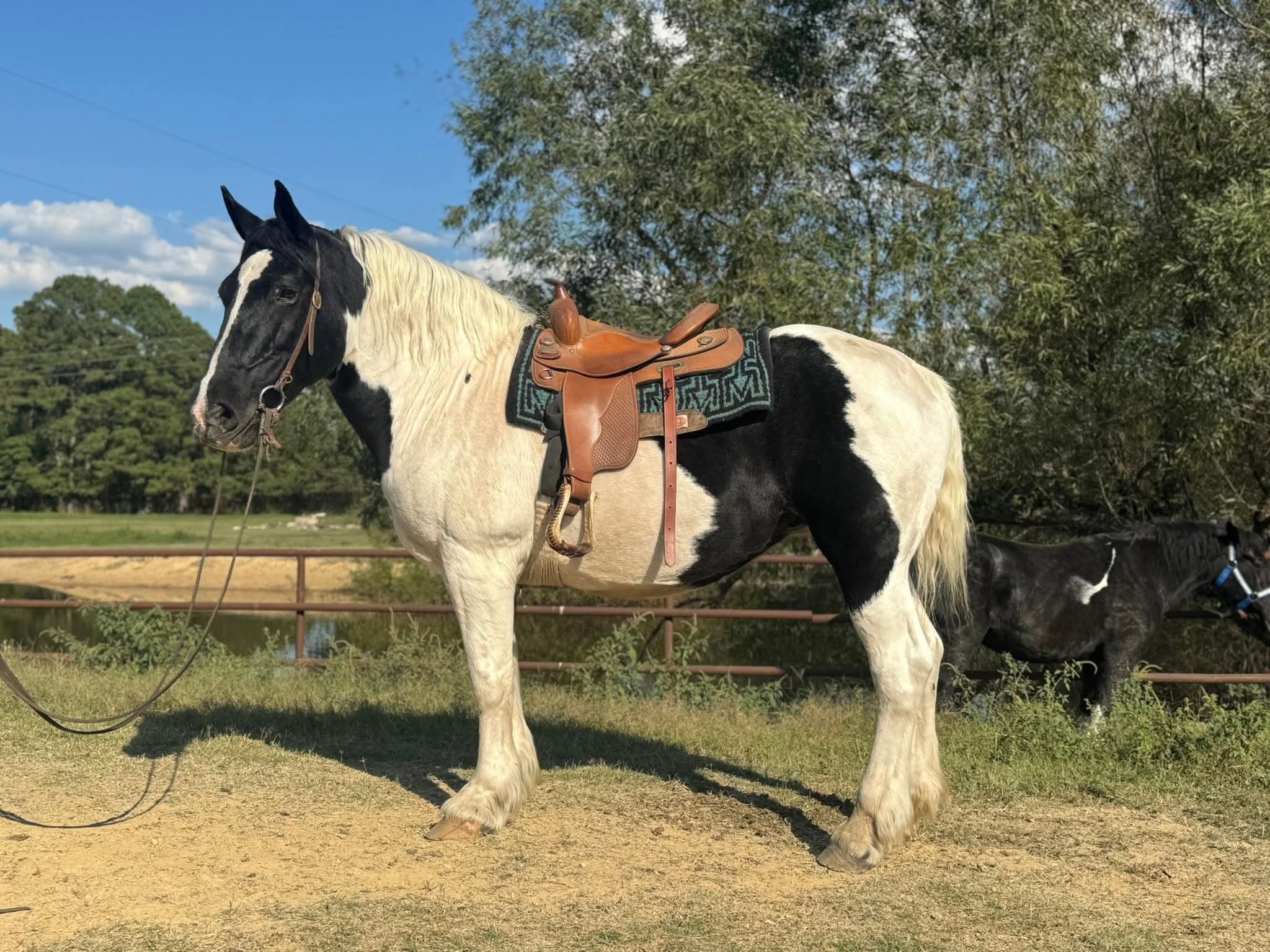 🐴 Daisy is a 14 year old Spotted Draft mare standing 16’3 hands tall. She is an extremely fancy lady, carried herself with a lot of class. She is a smooth beautiful mover. Very well broke to both ride and drive. She is people friendly, has been used to pull a passenger wagon at county fairs etc.